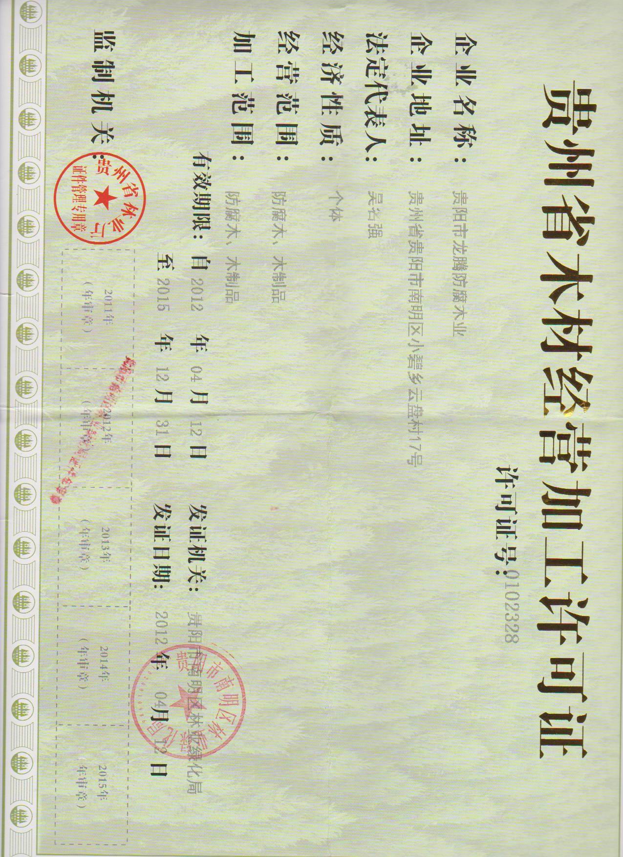 龙腾防腐木厂木材经营加工许可证